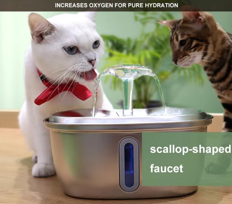 【304 Stainless Steel-Safer】This pet water fountain container is long-lasting durability&stronger, resistance to rust&corrosion, more hygienic&safety for cats drinking running water flow. Dishwasher safe.