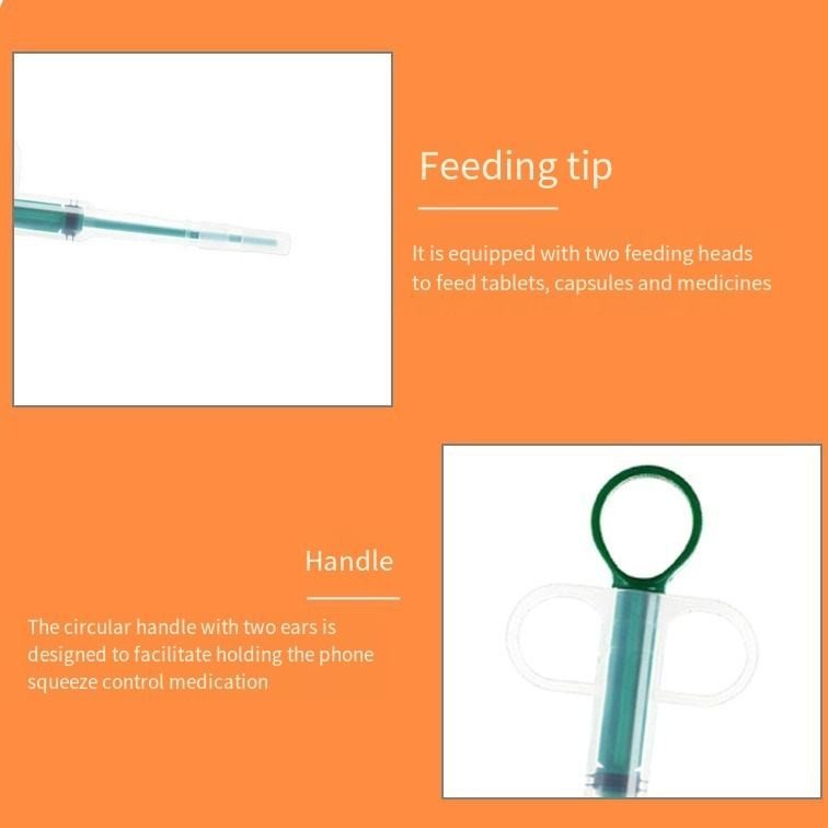 4. Every Single product match 2 silicone tube. the open one can hold the pills, the one that doesn't open is used to feed the liquid. The tip of the medicine feeder is made from delicate and comfortable soft silicone, when given medicines will not hurt the teeth, gums and cheeks.Especially for feeding water,liquid medicines,solid medicines, pills, capsules to pets and More.