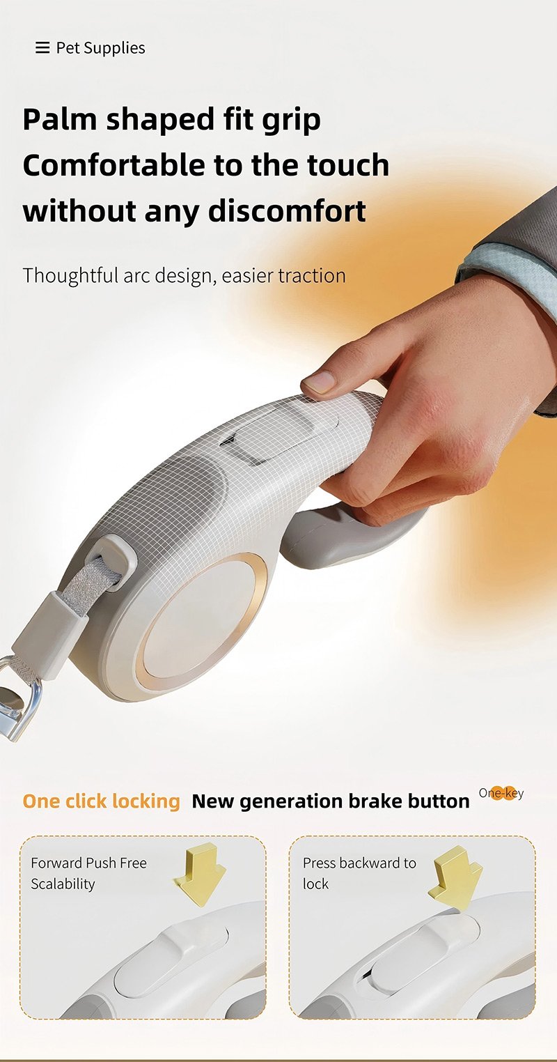 1. Durable Retractable Dog Leash: The 5m dog leash has a smart locking button to set the leash length as required, it gives you full control to ensure the safety of your dog and others.