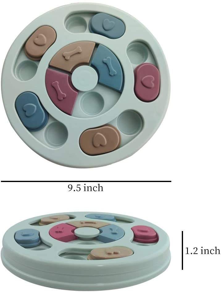 【 INTERACTIVE DOG PUZZLE TOYS 】24cm*3cm (diameter * height).This is an entertaining interactive puppy puzzle toy.which can easily become the closest companion and toy for your puppies and cats.Encourage and train your puppy or cat to find food through sliding parts to improve eating pleasure and IQ.